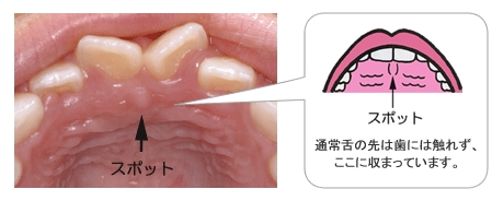 このように舌の先が常に上の前歯の後ろ(スポット)に触っています。