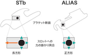 従来の装置はワイヤーを通す溝が長方形でしたが、アリアスは世界初の正方形になっています。