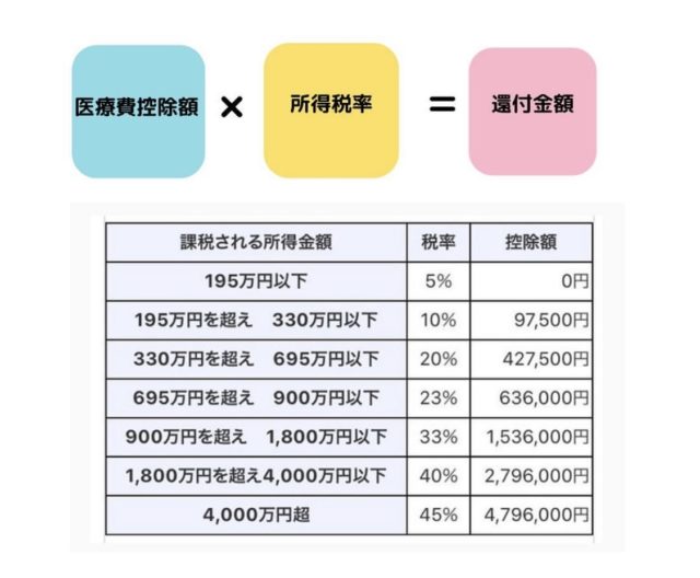 次に医療費控除額に所得税の税率をかけて戻ってくる税金を計算します。