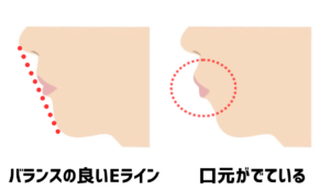 ・鼻先と下顎の先端を結んだ直線であるEラインよりも外側に口唇が出ている