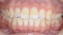 下の前歯にアタッチメントを装着し、歯を挺出することによって噛み合わせの深さを改善します。